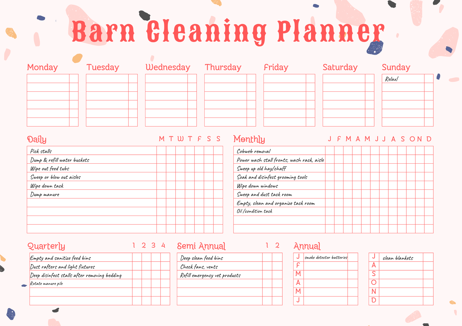 Since it's our favorite place, we always want the barn looking its best! Follow this checklist to help you keep up with the cleaning!
