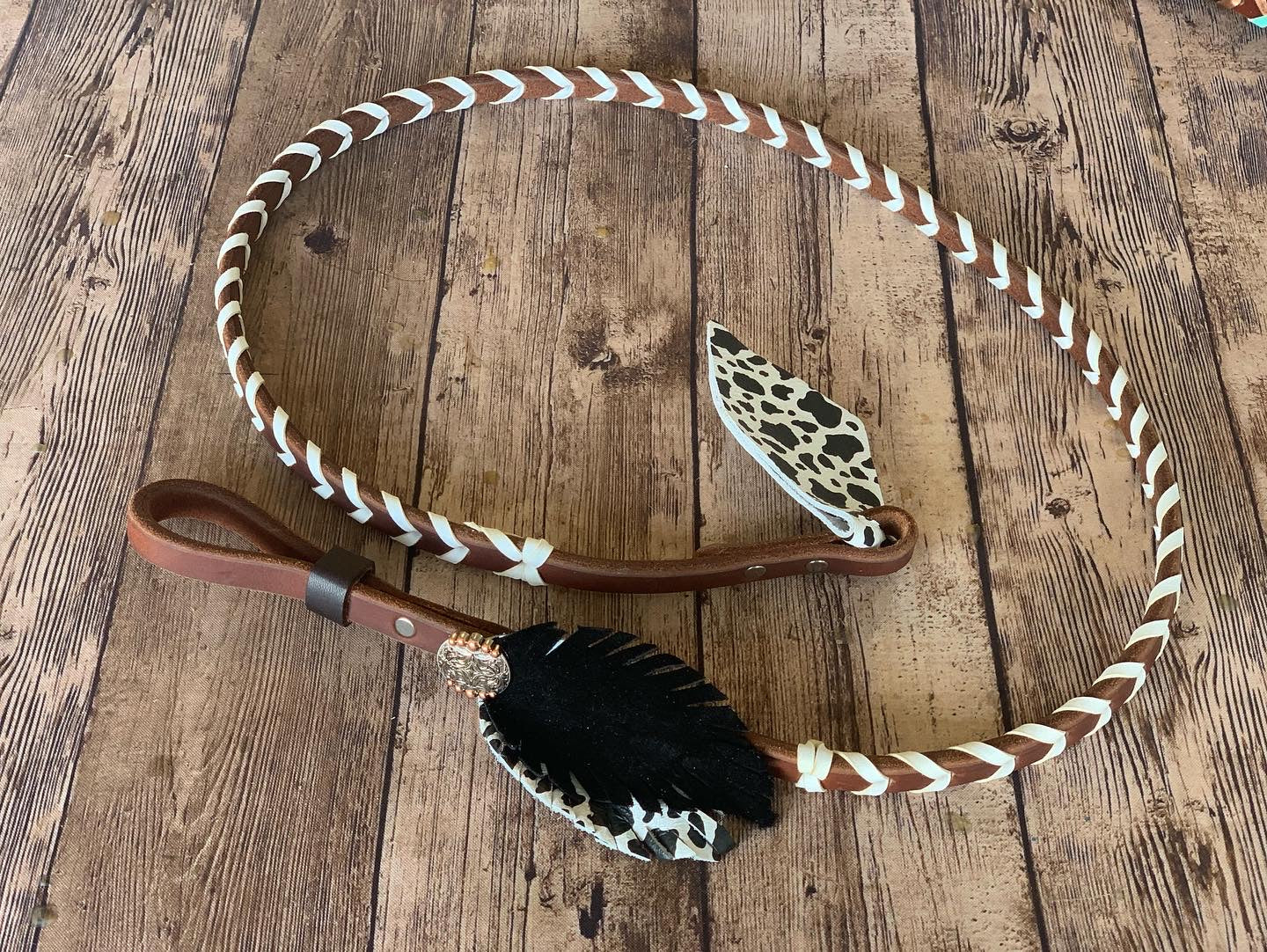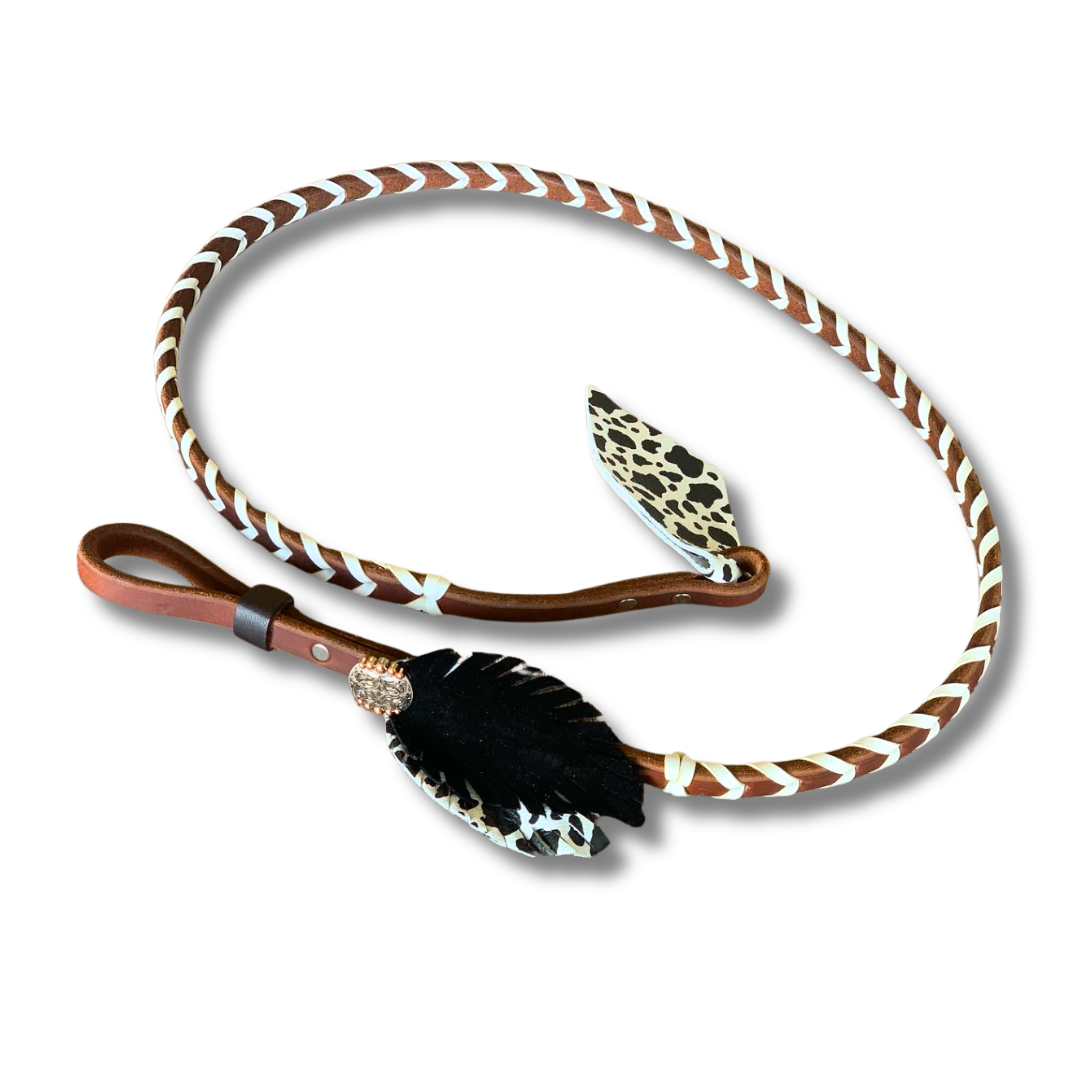 These gorgeous 54” over and unders are supple, stylish, and ready to ride. Each one features a matching leather flower or feather at the handle and a coordinating leather popper at the end - because details matter, and yours should pop!
