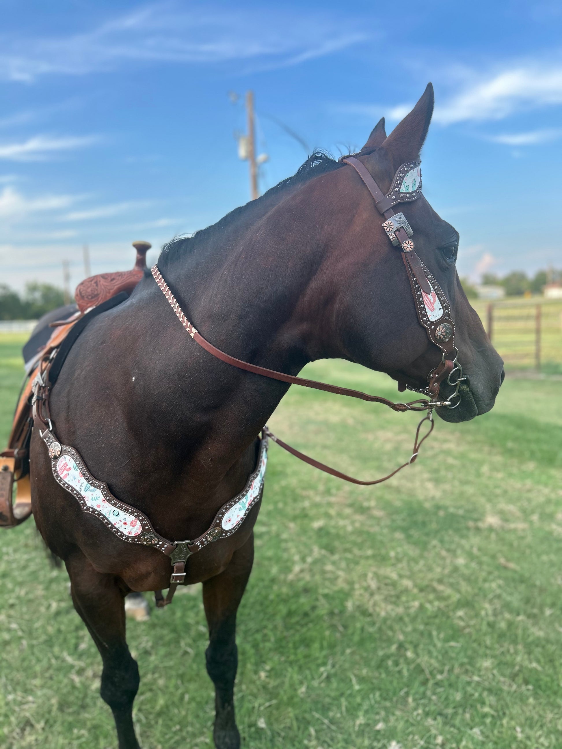 Bloom with attitude in the Desert Rose inlay - soft enough to be feminine, but bold enough to make a statement. It's warm tones are made for the cowgirl who rides with confidence, turning heads while staying effortlessly chic. This is strength and style in full bloom.