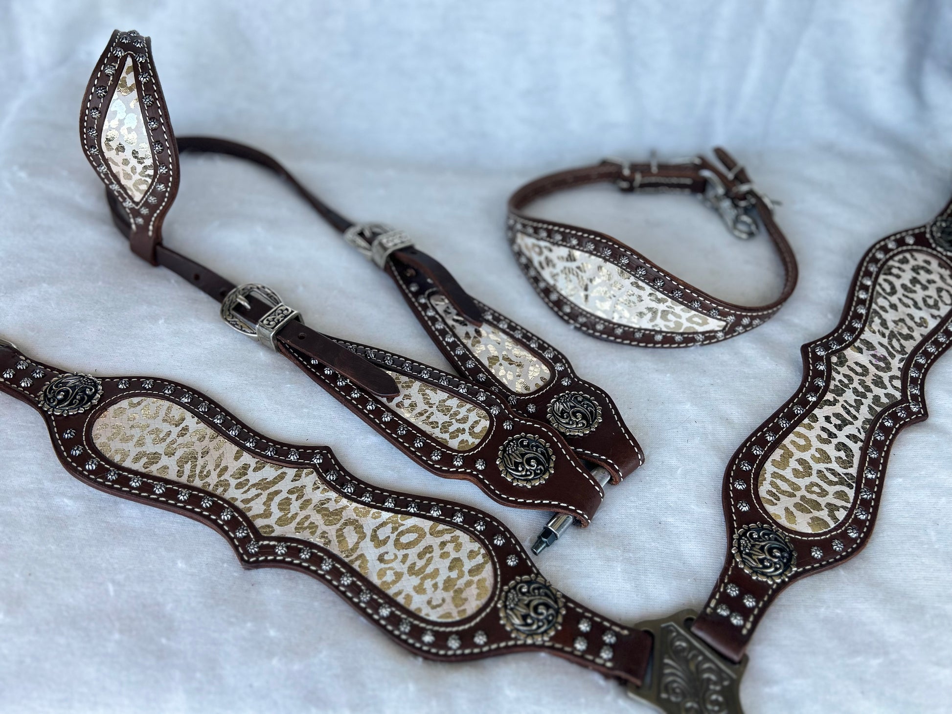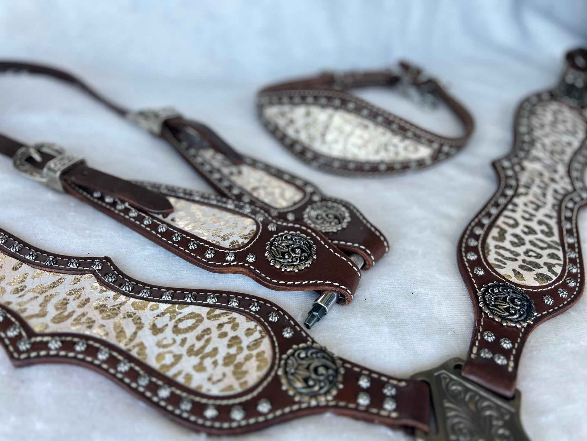 Unleash your inner wild side with the Gold Cheetah - where western grit meets pure glam1 This inlay shimmers with golden tones that catch the light and demand attention, giving your tack the perfect mix of fierce and feminine. It's made for the rule-breakers, the trend setters, and every cowgirl that rides with confidence and a little sparkle.