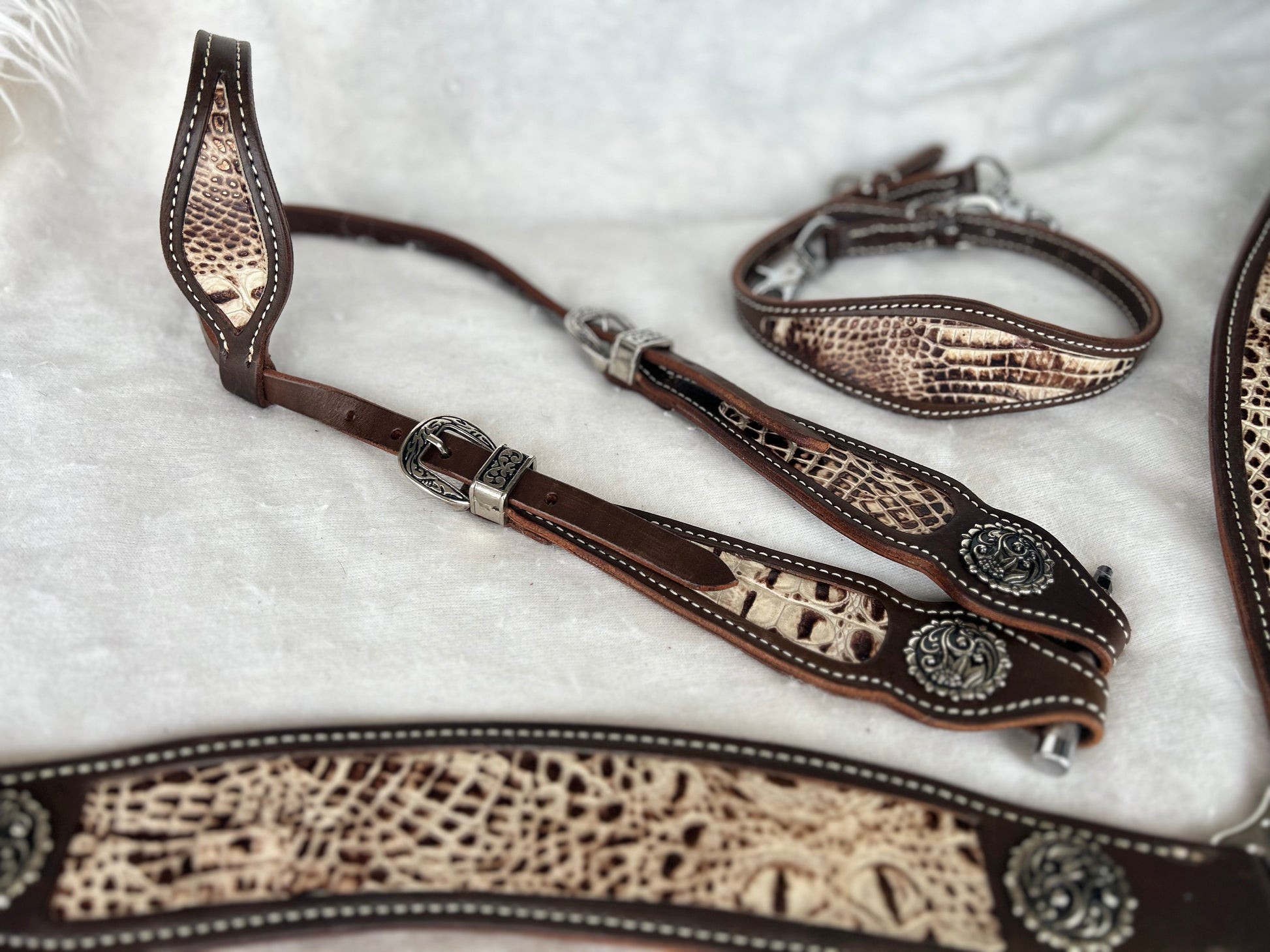 Sleek, sophisticated, and full of attitude - the Ivory Glam Gator inlay is where classic elegance meets rockstar edge. Its creamy ivory tones shine with subtle glam, making your tack effortlessly bold while keeping it undeniably chic. Perfect for the cowgirl who blends class with confidence.