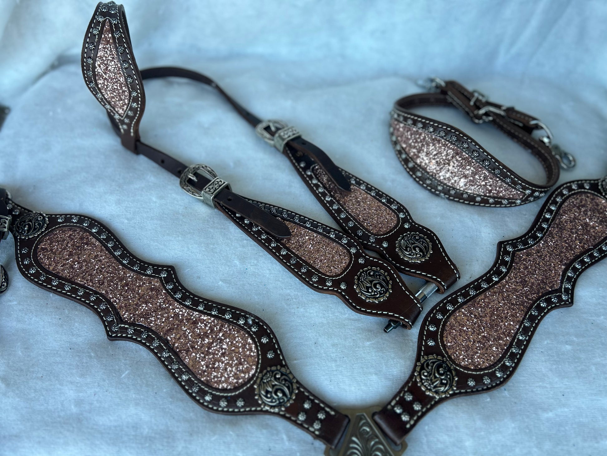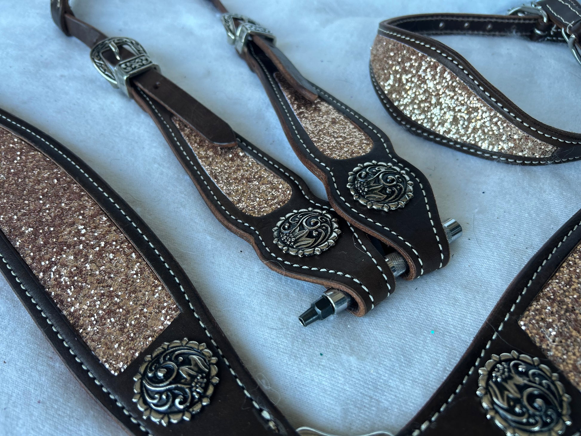 Step into the spotlight with Rose Gold Glitter Glam, the inlay that turns every ride into a show. The soft rose tone sparkles with bold confidence, creating a look that’s equal parts classy and fierce. Whether you’re in the arena or owning the spotlight at the barn, this inlay says one thing loud and clear — you were born to shine.