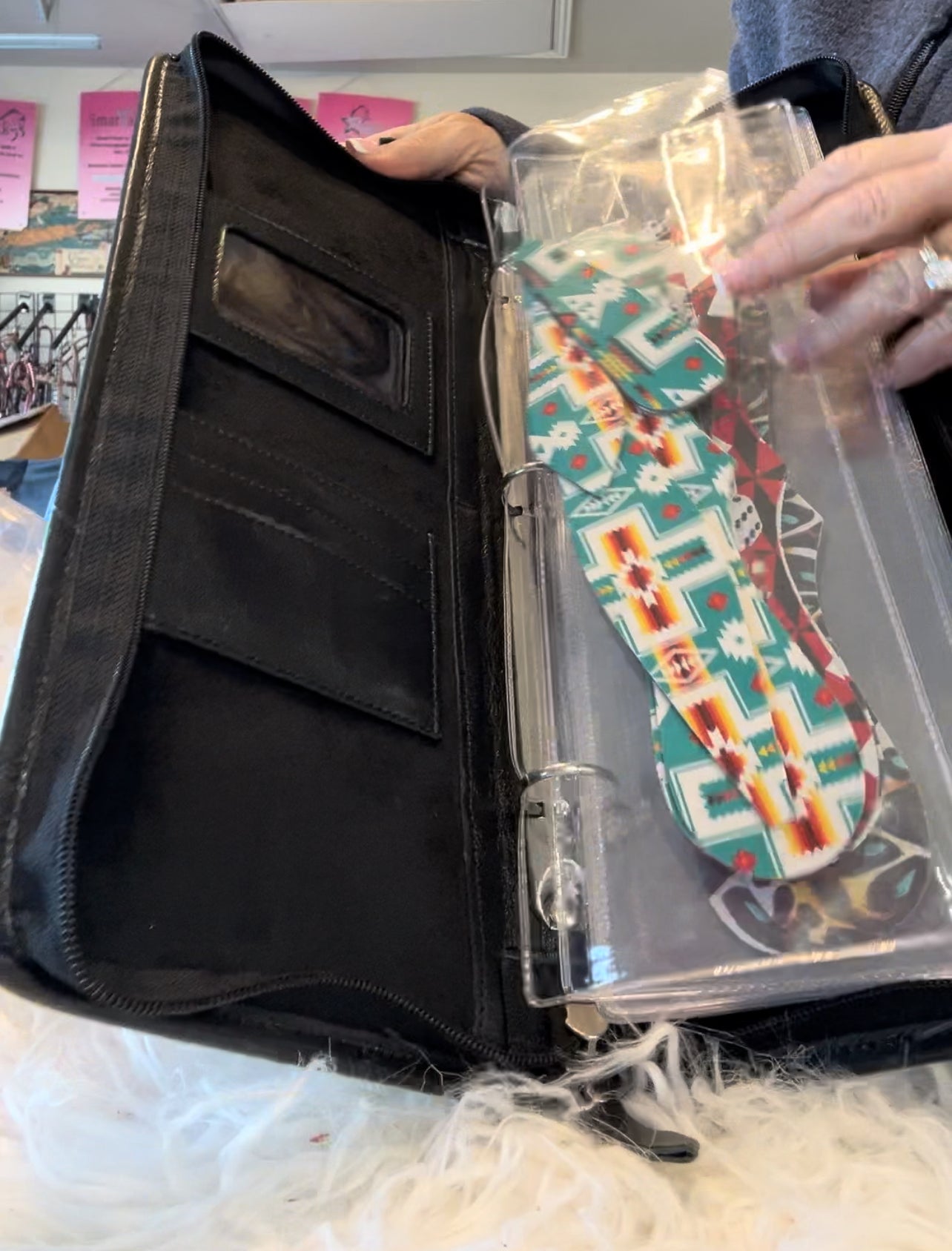 Say goodbye to bent or messy inlays with the Face Space Storage System - your new best friend for organization. It comes loaded with ten heavy-gauge plastic sleeves in a sturdy 1” three-ring binder, all wrapped up in a sleek, gorgeous leather zipper case that looks as good as it works.