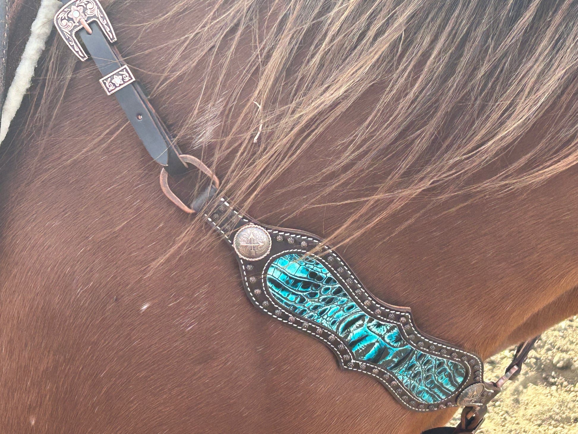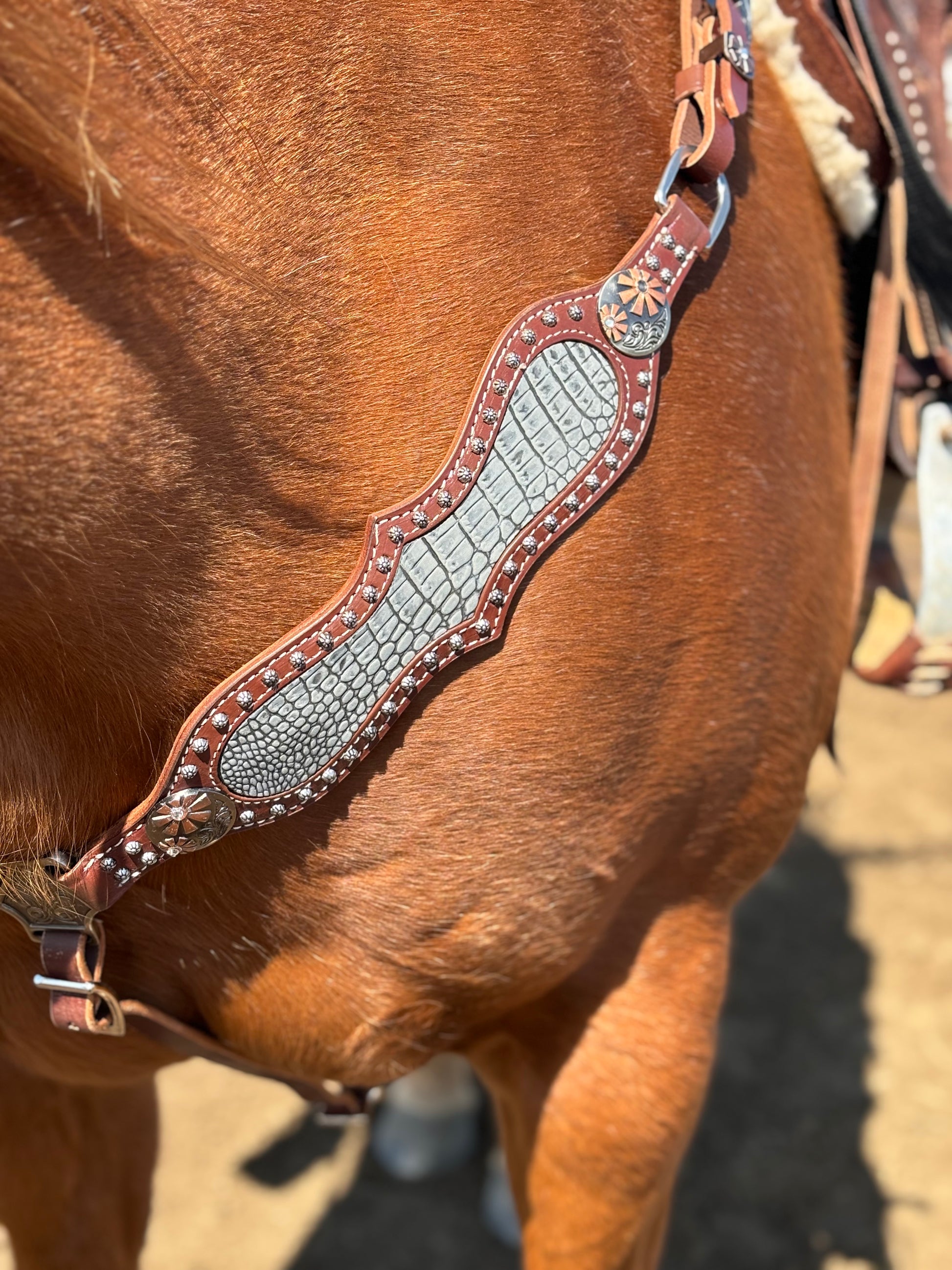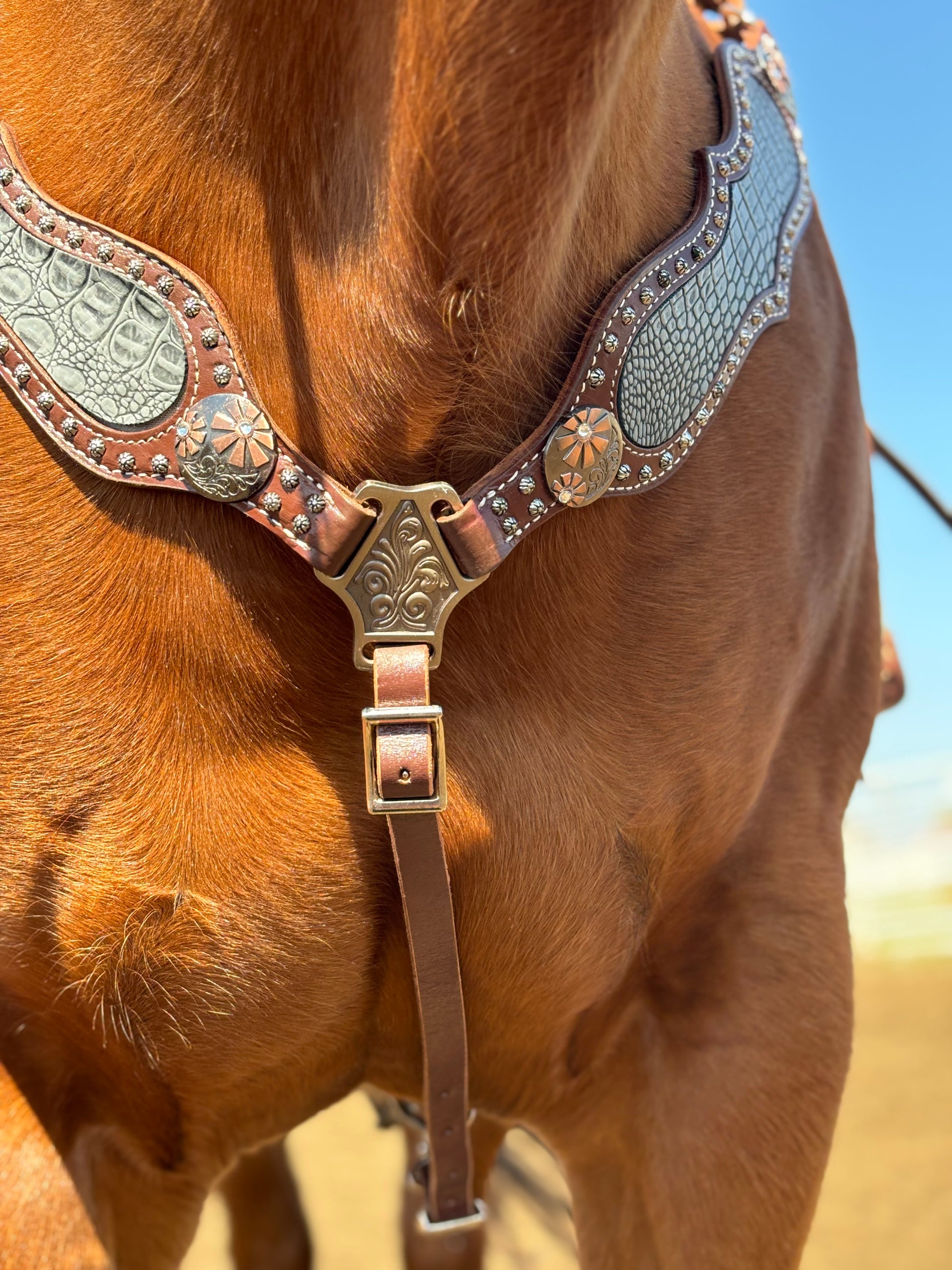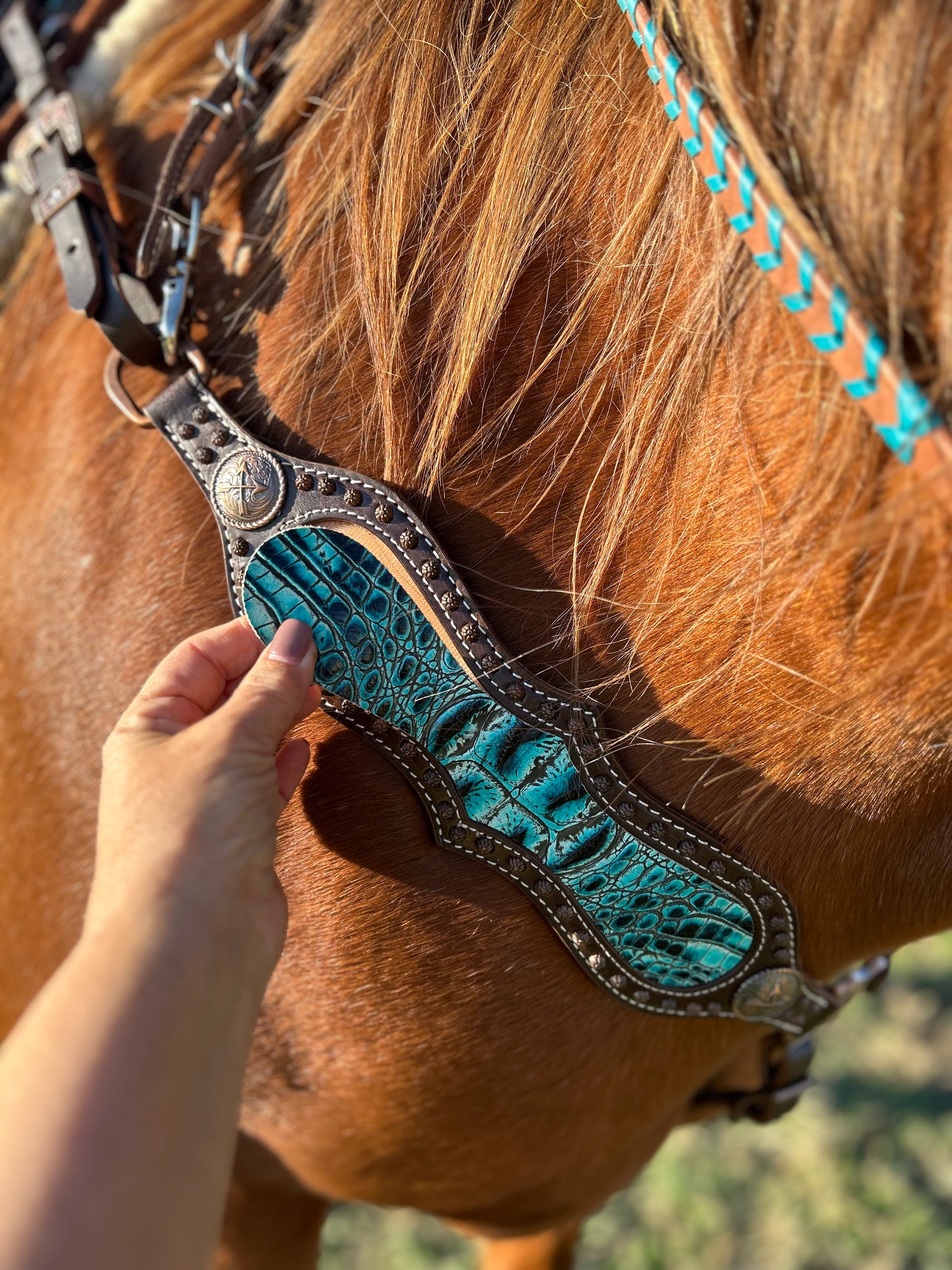 Available in medium or dark oil leather, this gorgeous tack set features your choice of antique copper or antique nickel studs, matching hardware, and beautifully crafted buckles - designed so you can create your perfect look with ease and style.